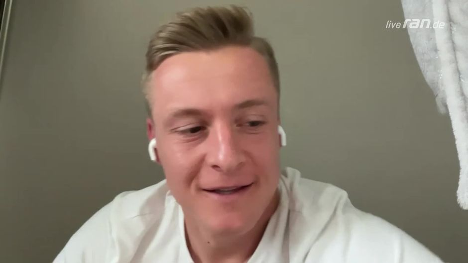 Das Kind geht vor. Das Interview von unserem ran-Moderator Max Zielke und Felix Kroos wird durch einen süßen Zwischenfall unterbrochen.