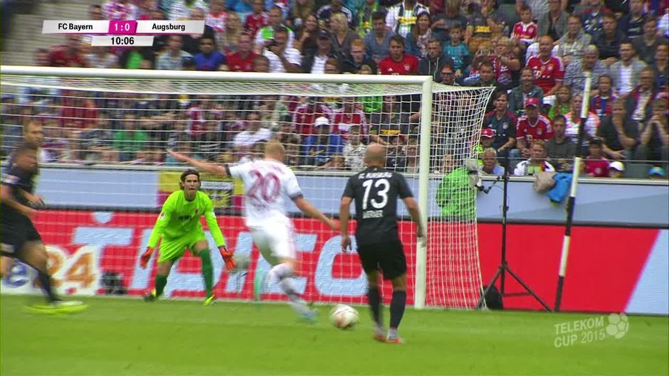 Bayern-Profi Sebastian Rode trifft beim Telekom Cup gegen Ausgburg nur die Latte.