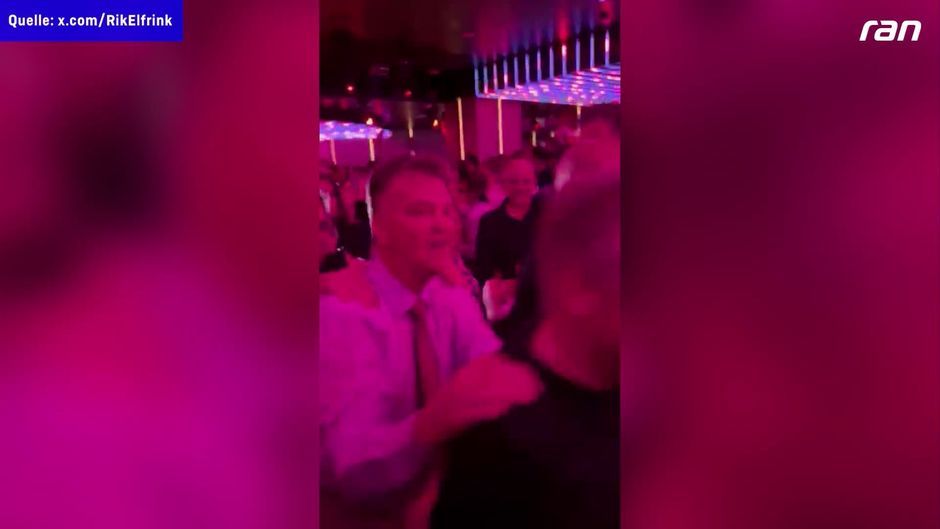 Der Eindhoven-Sieg beim FC Sevilla wird vom ehemaligen Bondscoach Louis van Gaal feucht-fröhlich gefeiert.