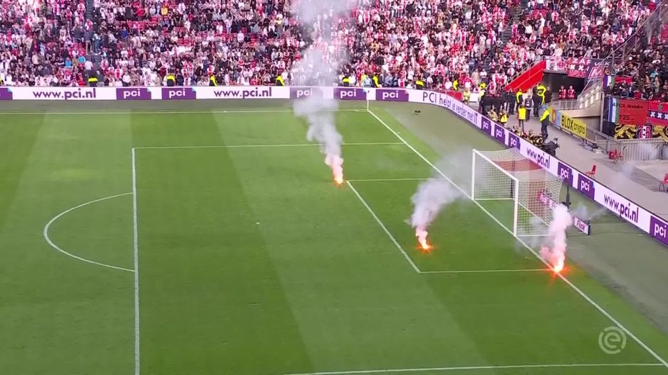 Wegen Fan-Ausschreitungen muss der "Klassieker" zwischen Ajax Amsterdam und Feyneoord Rotterdam vom Schiedsrichter abgebrochen werden.