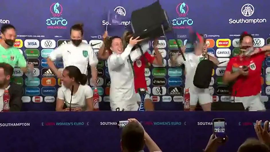 Österreich konnte sich im zweiten Gruppenspiel gegen Nordirland knapp mit 2:0 durchsetzen. Die Spielerinnen stürmten die Pressekonferenz und waren außer Kontrolle.