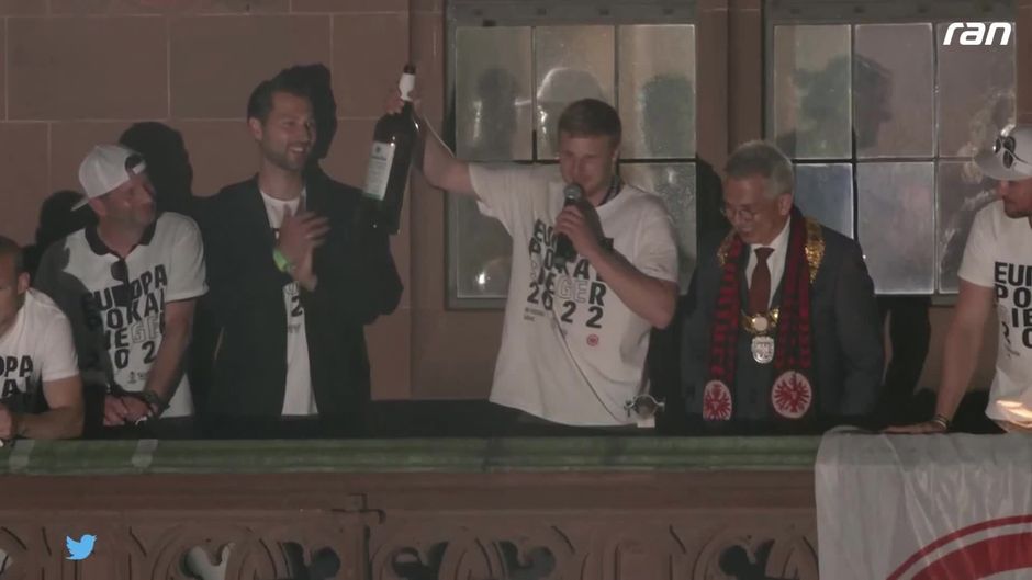 Ausgelassen feiert Martin Hinteregger den Europa League Triumph der Frankfurter! Fans sind allerdings schockiert darüber, wie man eine Sieger-Medaille so zweckentfremden kann..