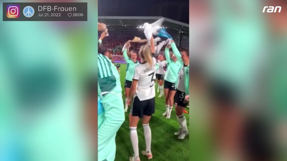 Die DFB-Frauen stehen nach dem 2:0 gegen Österreich im Halbfinale der WEURO 2022 in England. Die Freude nach Abpfiff ist im Team riesig. Die Mannschaft hat bereits bewiesen, dass sie in der Kabine ordentlich einheizen kann.