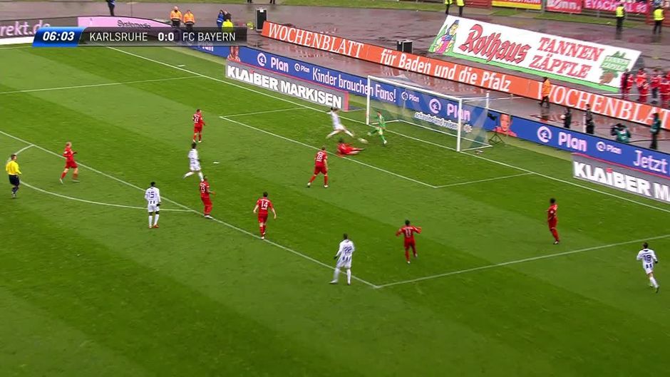 Dimitrios Diamantakos verpasst mit einer Doppelchance die Führung für den KSC gegen den FC Bayern.