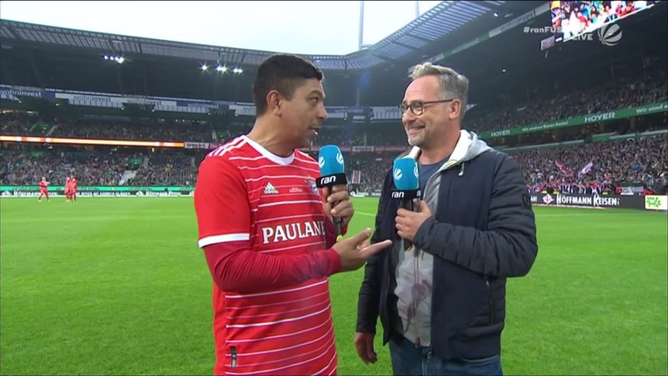 Grandiose Story von Giovanne Elber. Seine Oktoberfest-Anekdote über ihn Pizarro und Hargreaves ist bislang die beste des Abends.
