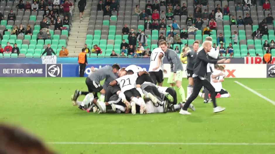 Hier gibt es exklusive Eindrücke direkt von der Seitenlinie: Die deutsche U21-Nationalmannschaft jubelt nach ihrem EM-Triumph.