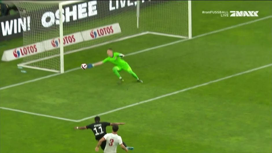 Er sieht die Schwäche des Torhüters - und nutzt sie eiskalt aus! Das 17-jährige Wunderkind Youssoufa Moukoko trifft bereits zum fünften Mal in seinem vierten U21-EM-Qualifikationsspiel.