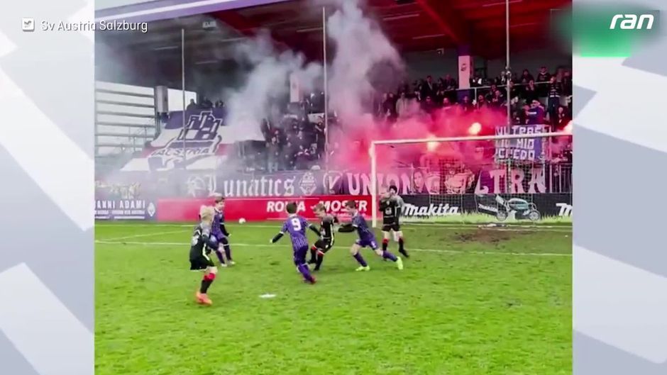 Was für eine Athmosphäre beim Spiel der U7 von Austria Salzburg. Vor über 1300 Anhängern dürfen die Kinder ein Testspiel absolvieren.