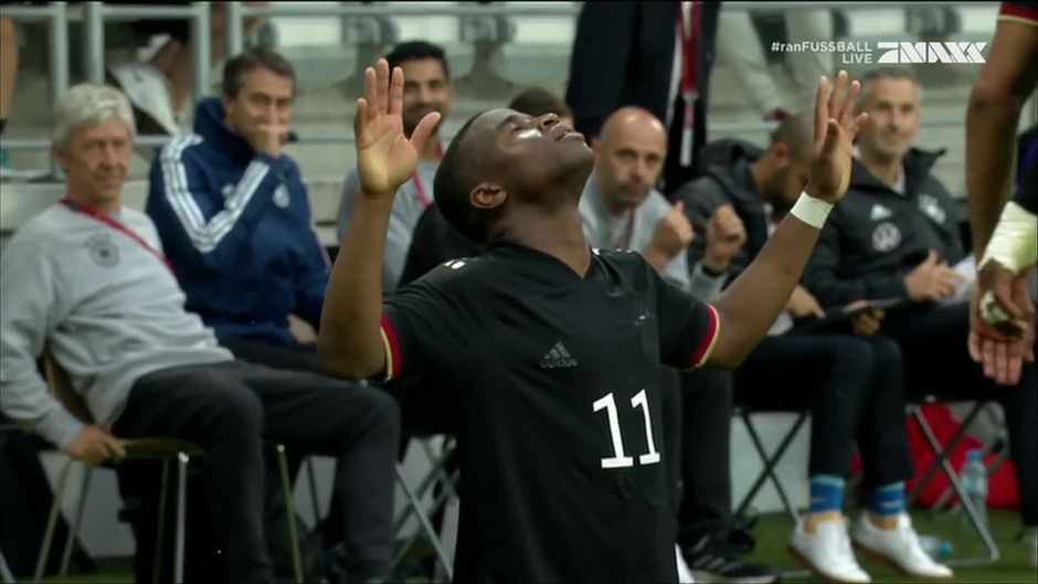 Youssoufa Moukoko trifft mit links und mit rechts. Nach einem sensationellen Zuspiel versenkt der junge Dortmunder den Ball im Netz und trifft zum 2:1 Endstand für die deutsche Mannschaft gegen Polen