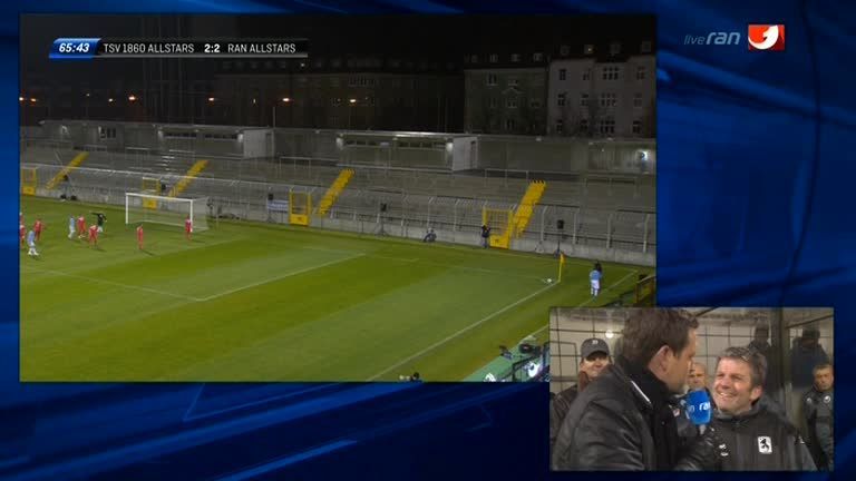 ran-Moderator Matthias Killing spricht während des ran-Helden-Benefizspiels zugunsten von Ex-Löwe Olaf Bodden mit Initiator Matthias Imhof...