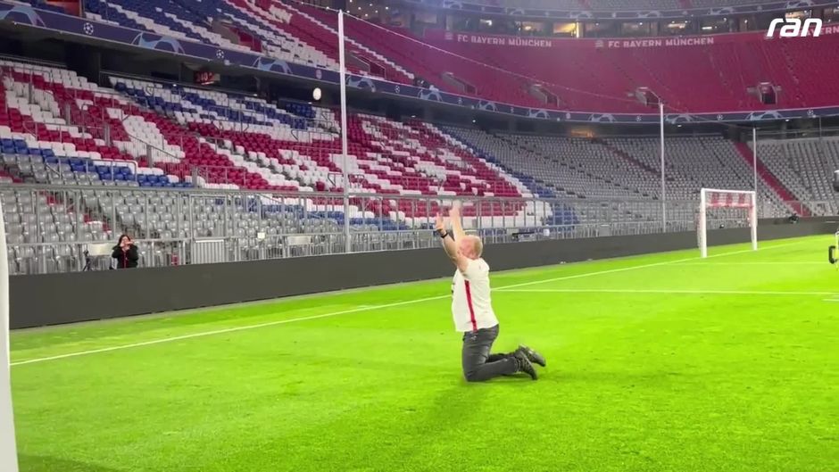 Was für eine verrückte Szene! Nach dem Ausscheiden des FC Bayern in der Champions League, springt ein Fan mit Köln-Trikot auf den Rasen und singt - er trägt aber auch eine Verletzung davon.