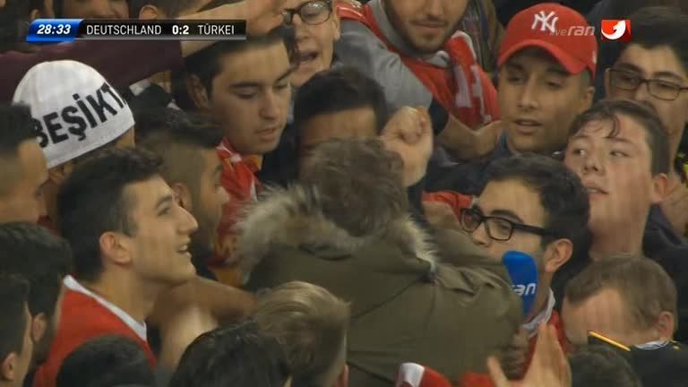 ran-Repoter Jörg Dahlmann scheut keine Mühen und geht mitten in den türkischen Block. Er wird herzlich von den Fans empfangen.