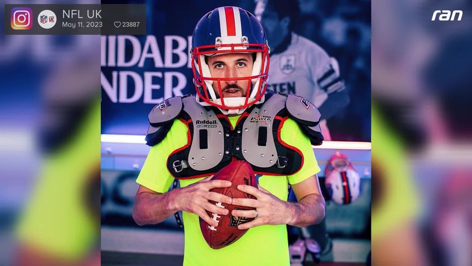 Anlässlich der NFL-Spiele in London schmeißt sich Harry Kane in eine Football-Ausrüstung. Die Aktion bleibt von seinen Fans nicht unkommentiert.