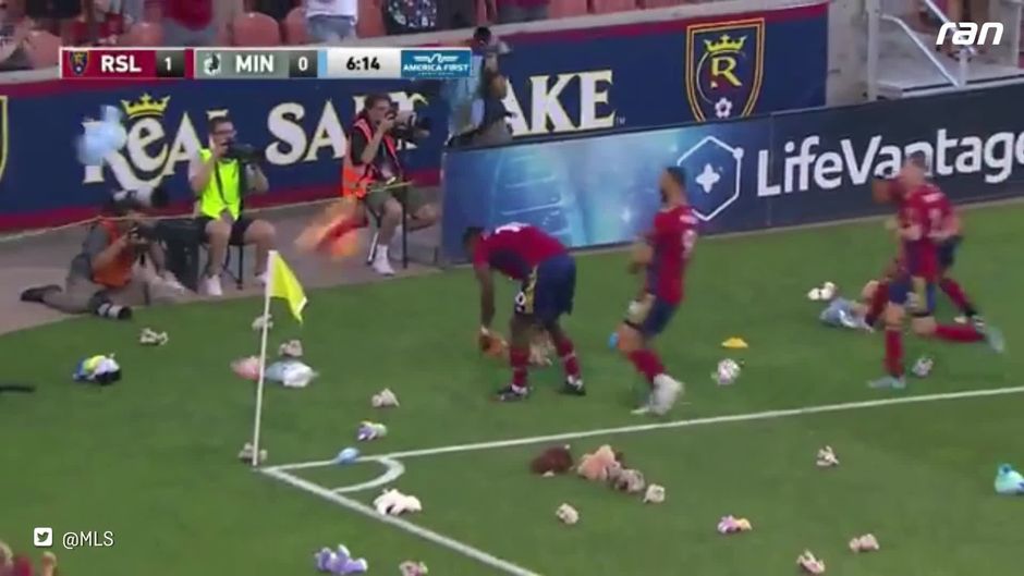 Der Jubel nach dem Tor von Sergio Cordova für Real Salt Lake in der MLS wird zu einer kuscheligen Angelegenheit. Tausende Fans werfen Teddybären auf das Spielfeld. Die Aktionen dient einem guten Zweck.