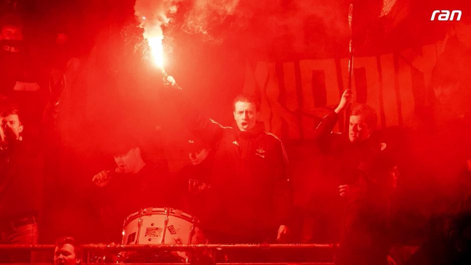 Der norwegische Fußballspieler Ole Saeter sieht die rote Karte und zündet kurz darauf im Fanblock ein Bengalo.