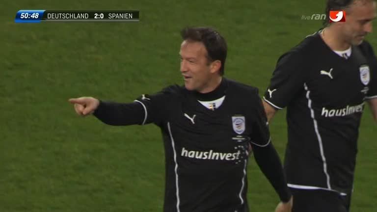 Freddi Bobic trifft zum 2:0. Nach einem individuellen Fehler des spanischen Verteidigers schießt Bobic den Ball per Direktabnahme ins rechte Eck.