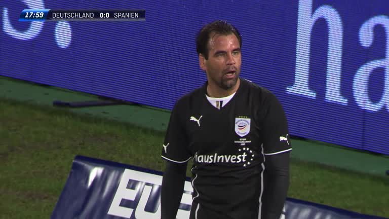 Ulf Kirsten hat enormes Pech. Sein Kopfball, nach Flanke von Neuville, endet nicht im Tor sondern leider nur an der Latte.