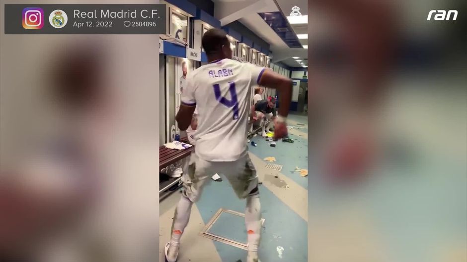 David Alaba zeigt nach dem Halbfinal-Einzug in der Champions League mit Real Madrid eine wilde Tanz-Einlage in der Kabine. Die Köngilichen setzten sich zuvor nach Hin- und Rückspiel gegen den Titelverteidiger FC Chelsea durch.