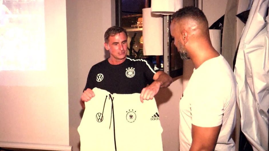 Die U21 lässt Coach Esume nicht ohne ein Präsent aus dem Meeting-Raum. ProSieben MAXX und ran.de zeigen ab September die Spiele der deutschen U21 live.