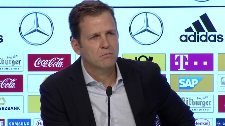 Oliver Bierhoff spricht auf der DFB-Pressekonferenz über das Thema Kommerzialisierung und die Begriffe "Die Mannschaft" und "#ZSMMN".