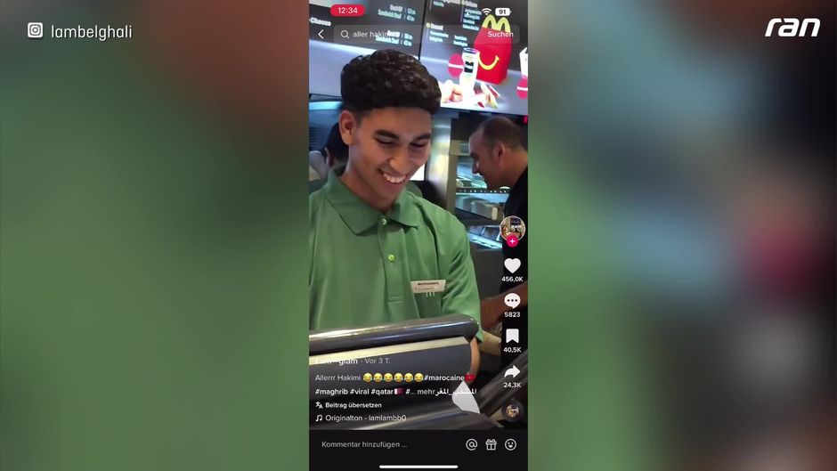 In einer Fastfood-Filiale wird das Ebenbild von Achraf Hakimi entdeckt und mit Gesängen gefeiert.