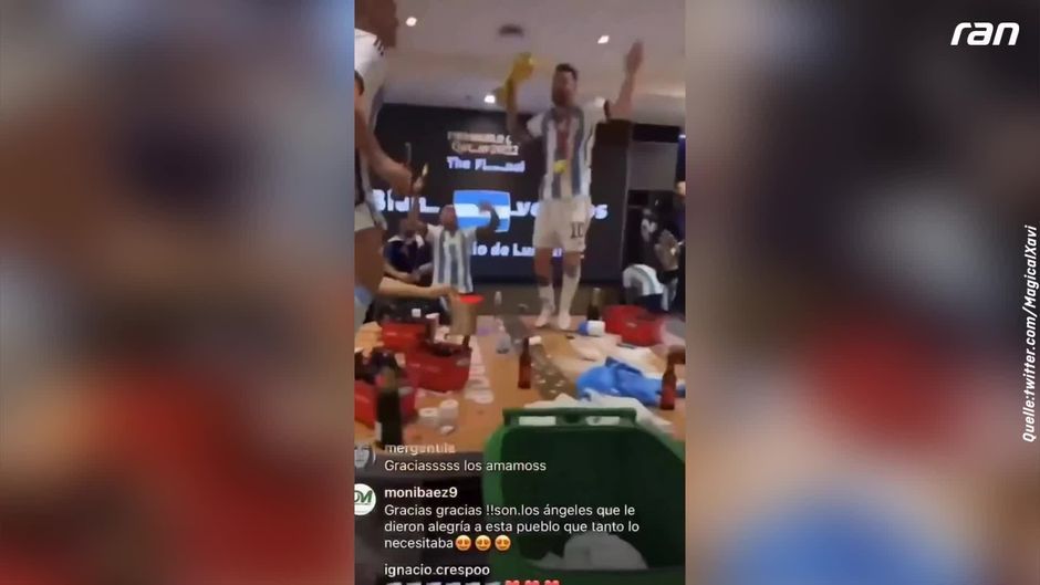 Die Argentinier feiern ihren WM-Sieg ausgelassen in der Kabine und spotten dabei über ihren Gegenspieler Kylian Mbappe.
