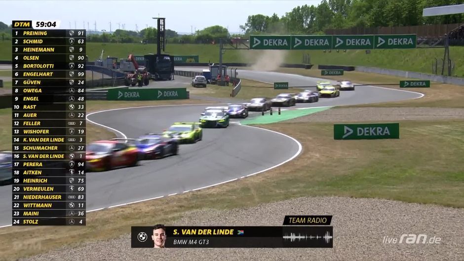 Beim Start des 2. DTM-Rennens in Oschersleben ist viel los und im Mittelfeld gibt es einige harte Kämpfe. Positionen. Unzufrieden zeigt sich am Funk auch Sheldon van der Linde. "Er hat mich von der Strecke gedrückt", schimpft er über Audi-Fahrer Felle