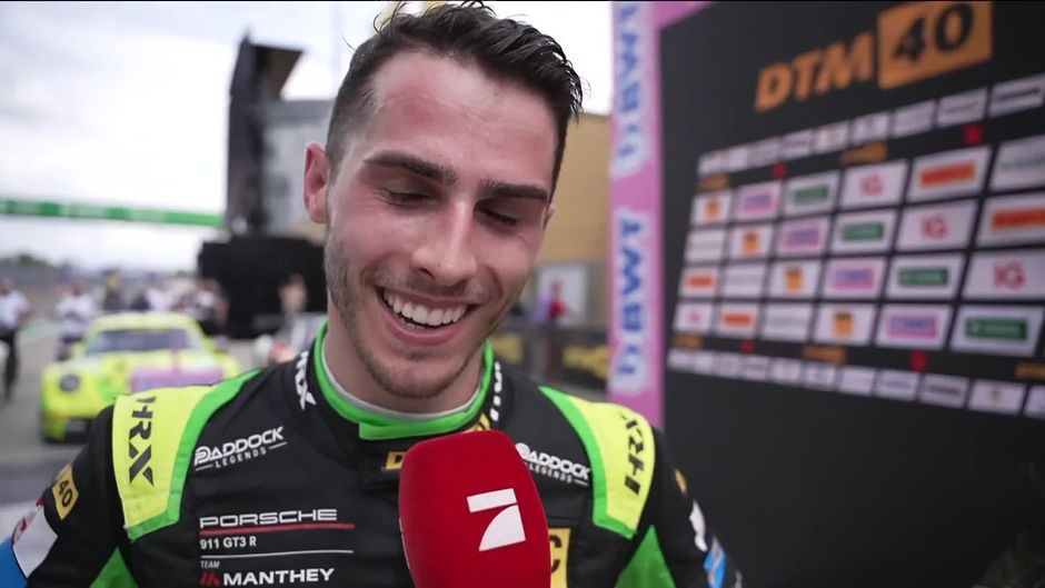 Thomas Preining ist nach dem Sieg am Lausitzring richtig platt. Denn die beiden Abt-Piloten haben den Österreicher im Dreikampf bis an die Grenzen gebracht.