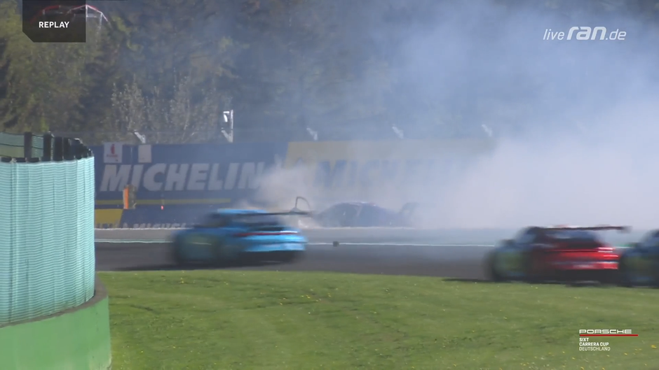 Beim Rennen des Porsche Sixt Carrera Cup Deutschland in Spa-Francorchamps kracht es heftig.