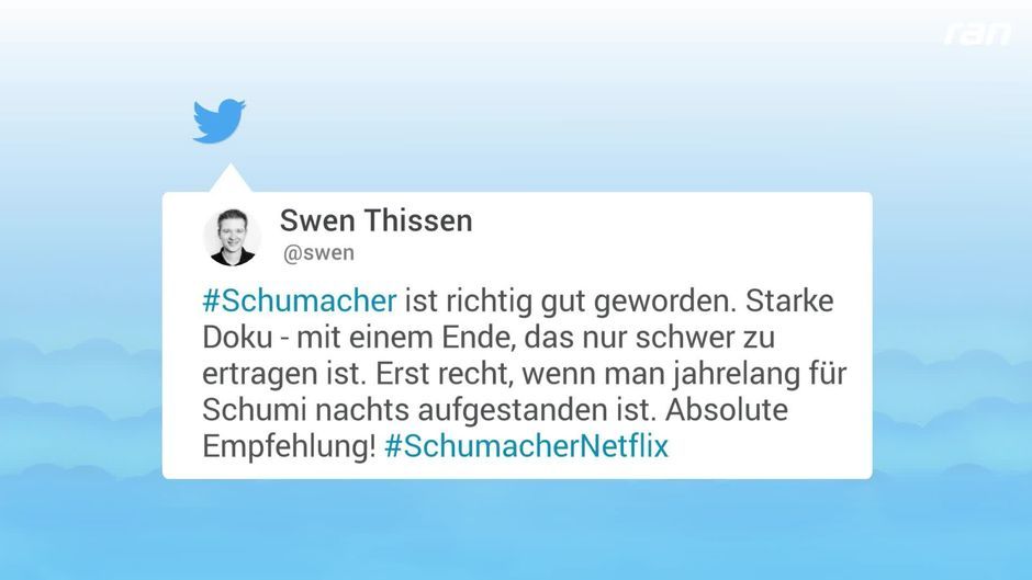 Die neue Dokumentation über die Karriere von Michael Schumacher ist nicht nur für Motorsport-Fans bewegend. ran.de hat die besten Reaktionen aus dem Netz für euch gesammelt.