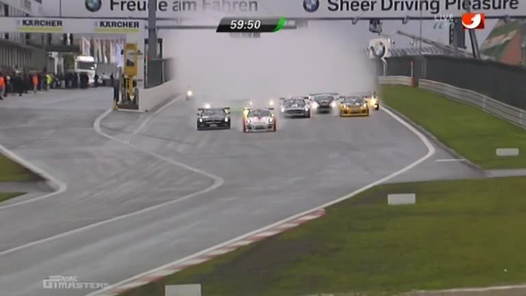 Nürburgring, Rennen 8: Der Start des Rennens auf regennasser Strecke.