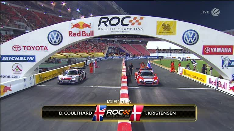 Ex-Formel-1-Pilot David Coulthard hat gegen den vielfachen Le-Mans-Sieger Tom Kristensen keine Chance im Halbfinale vom Race of Champions.