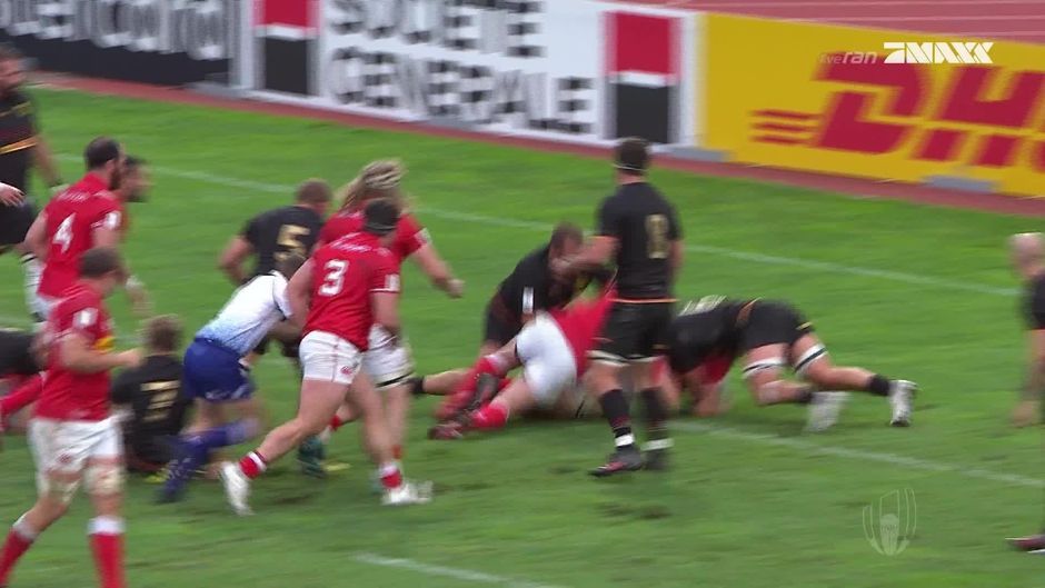 Der erste Versuch für Kanada! Lucas Rumball bringt den Ball in die Endzone. Auch der Erhöhungskick klappt.