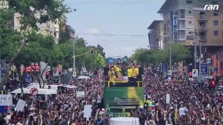 Südafrika kehrt nach dem WM-Titel im Rugby in die Heimat zurück. Tausende Fans versammeln sich auf den Straßen und feiern ihre WM-Helden.