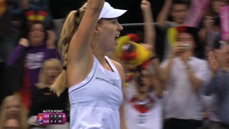 Angelique Kerber bringt das DTB-Team mit 2:1 in Führung. Gegen Samantha Stosur gibt es einen klaren Sieg. Die Australierin wirkt nach ihrem Marathon-Match am Samstag angeschlagen.